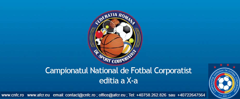 Va invitam sa participati cu echipa companiei dumneavoastra la cel mai mare turneu sportiv din Romania, dedicat sportului corporatist. Campionatul National de Fotbal Corporatist (fosta Cupa “CORNEL DINU” pentru companii), este un team building sportiv, in cadrul caruia angajatii companiilor concureaza pe durata a 3 luni (martie – iunie ), in incercarea de a castiga prestigiosul trofeu. Turneul reprezinta o buna oportunitate de a interactiona cu actualii clienti sau viitori parteneri. Organizat in sistem primavara – toamna, Campionatul National de Fotbal Corporatist, a reusit sa creasca de la an la an, nu mai putin de 165 de companii participand doar in zona Bucuresti/Ilfov (lista completa o gasiti mai jos sau in prezentarea atasata). Dupa ocuparea ultimelor 3 locuri ramase disponibile, vom anunta componenta completa a tabloului participantilor la cea de-a X-a editie.