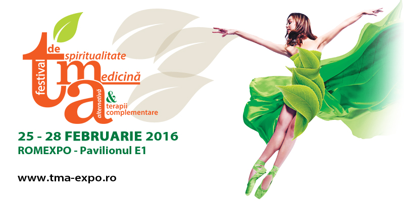 Incepand cu 25 februarie, timp de 4 zile, numai la FESTIVALUL DE SPIRITUALITATE, MEDICINA ALTERNATIVA SI TERAPII COMPLEMENTARE - TMA, vom avea posibilitatea atat de a cumpara produse naturiste, cat si sa participam gratuit la conferinte si seminarii organizate de specialisti in domeniu cum ar fi: prof. dr. Dumitru Constantin Dulcan - medic neurolog si psihiatru, Cerasela Rogen - life coach, Mihaita Toma - psiholog si terapeut, Raluca Costache - medic specialist de medicina interna, Geta Heimerl - psiholog si parapsiholog etc.
