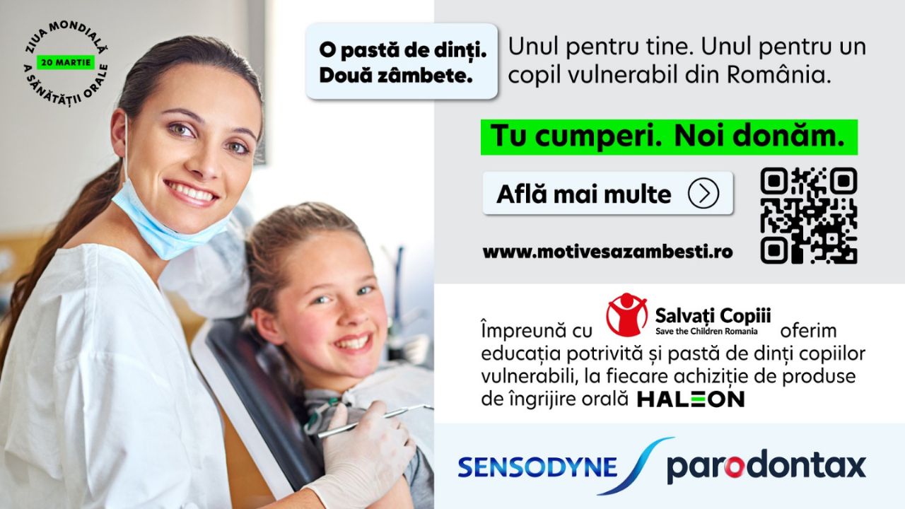 Cu ocazia Zilei Mondiale a Sănătății Orale, celebrată în fiecare an în data de 20 Martie, Haleon România, lider global în sănătatea consumatorului, și Salvați Copiii România lansează o inițiativă națională menită să susțină sănătatea orală a copiilor din comunități vulnerabile, prin acces la produse esențiale și educație pentru prevenție