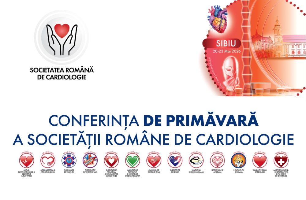 Afisari: 76Societatea Română de Cardiologie vă invită să participați la CONFERINȚA DE PRIMĂVARĂ 2026, ce va avea loc la Sibiu, în perioada 20-23 mai 2026.