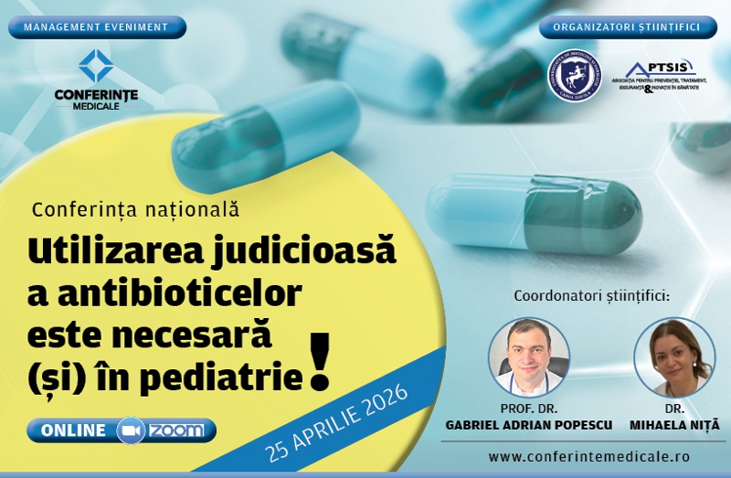 Conferința „Utilizarea judicioasă a antibioticelor este necesară (și) în pediatrie” își propune să ofere un cadru științific coerent pentru înțelegerea și aplicarea principiilor utilizării raționale a antibioticelor, de la ghiduri și bune practici, până la analiza riscurilor și a cazurilor clinice relevante.